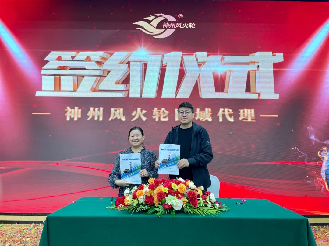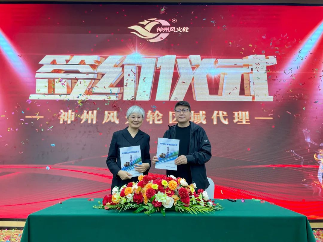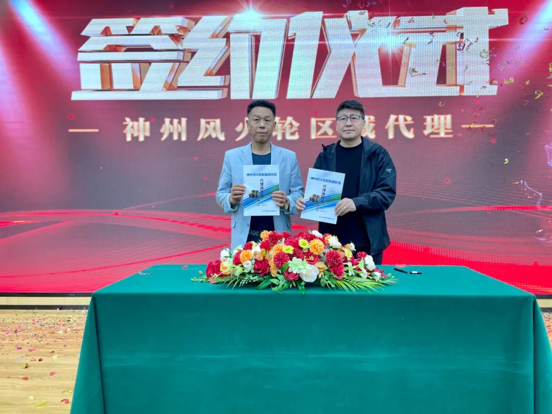 神州風(fēng)火輪為全國意向代理商提供了一次財富機(jī)遇,同時也進(jìn)一步布局全國市場。遼寧神州風(fēng)火輪輪胎科技有限公司戰(zhàn)略顧問崔邵焜先生代表公司與意向代理商進(jìn)行簽約儀式,本次招商會共有10位高瞻遠(yuǎn)矚的意向代理商完成簽約,成功鎖定11城,再次認(rèn)證了神州風(fēng)火輪的綜合實(shí)力和品牌影響力,這也是神州風(fēng)火輪未來發(fā)展的動力。獨(dú)行快,眾行遠(yuǎn)。神州風(fēng)火輪將與代理商在合作的道路上并肩前行,追求進(jìn)步,為代理商的發(fā)展壯大持續(xù)不斷地注入能量。