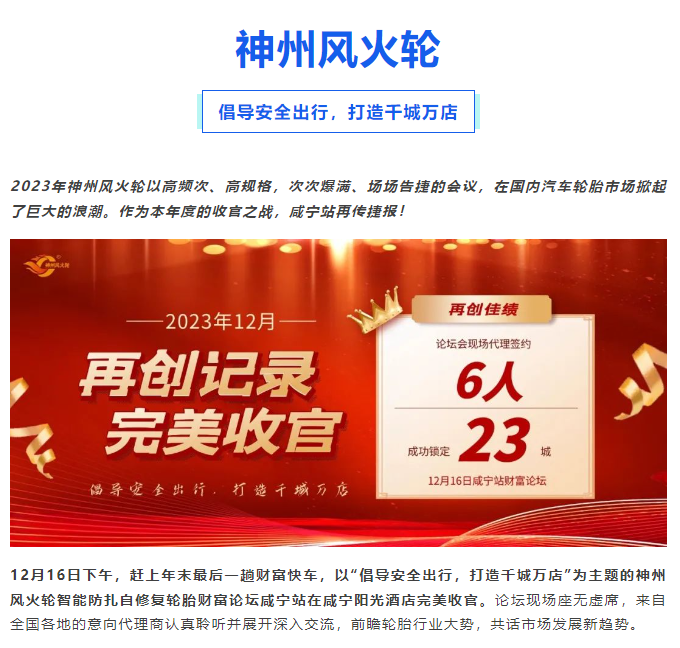 【咸寧站】“倡導(dǎo)安全出行,打造千城萬店”神州風(fēng)火輪智能防扎自修復(fù)輪胎財富論壇